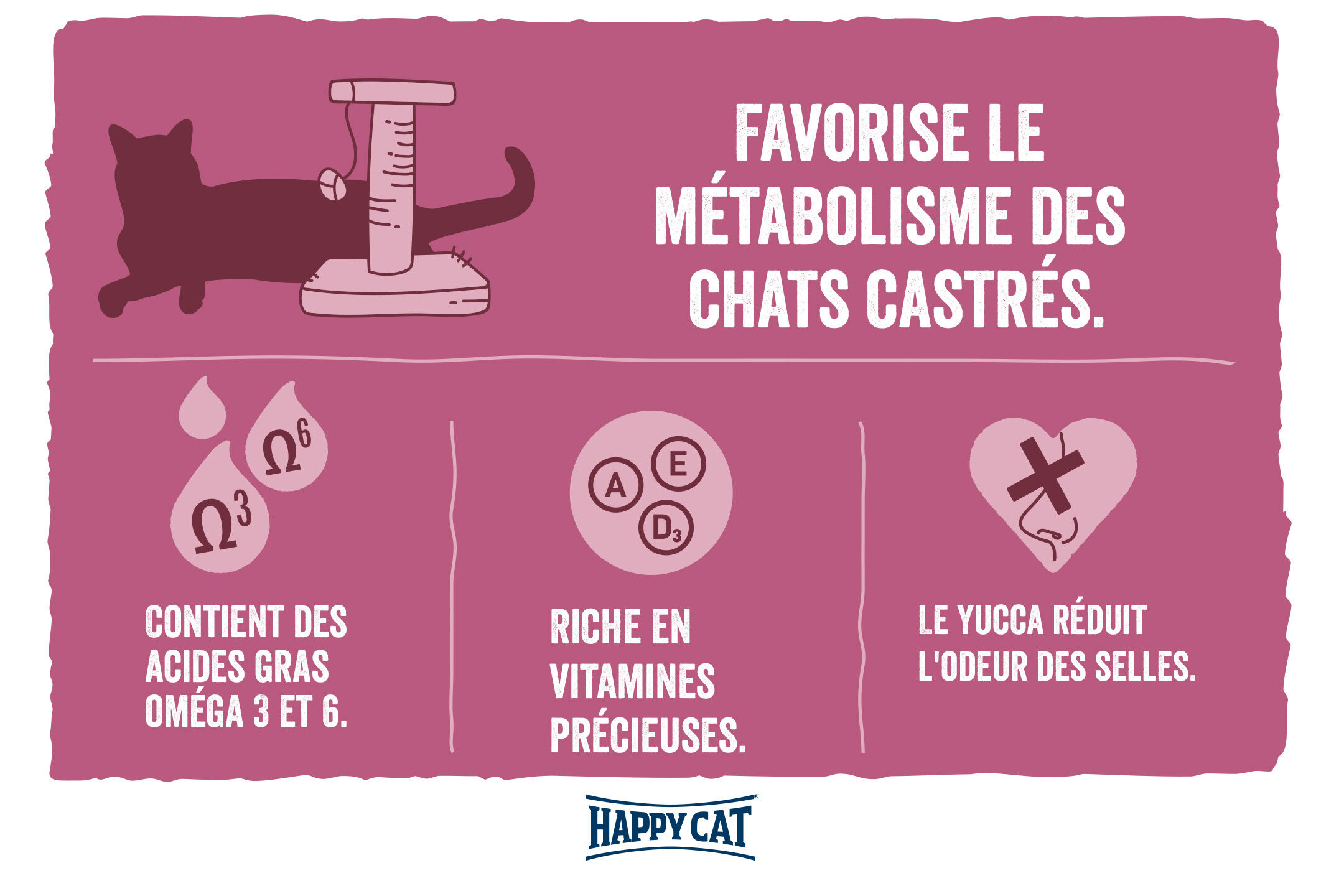 Aliment équilibré pour chats castrés, à teneur réduite en matières grasses