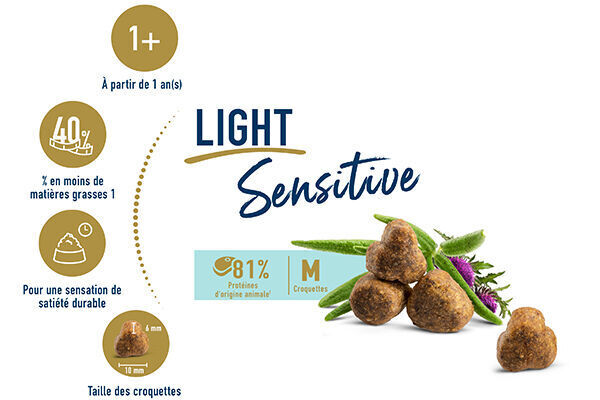 - Seulement 9 % de matières grasses et donc plus faible en énergie que les autres aliments pour chats